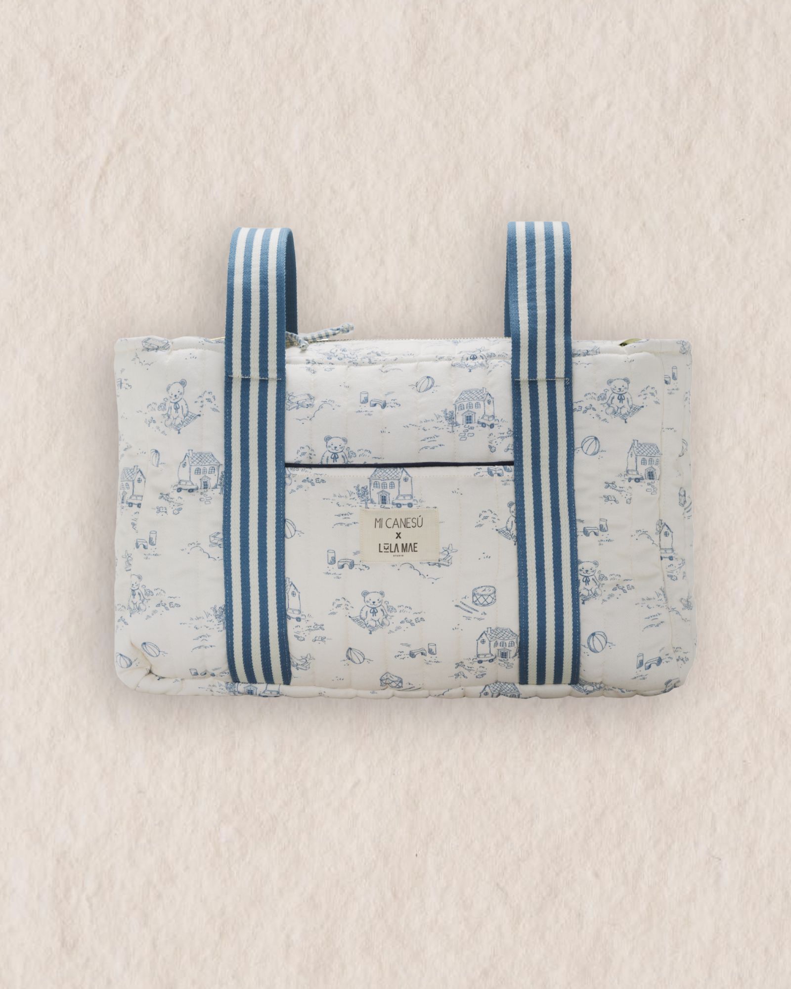 Bolso panera para colgar en el manillar del carrito de paseo en estampado Toile de Jouy. Exclusivo de Mi Canesú.