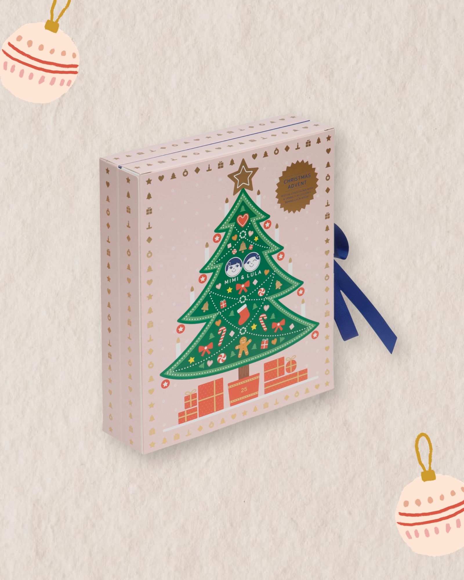Un alegre diseño de árbol de Navidad es nuestro calendario anual de Adviento! Lleno de divertidos accesorios de temática festiva, ¡es la cuenta regresiva navideña perfecta para los más pequeños amantes de los accesorios!