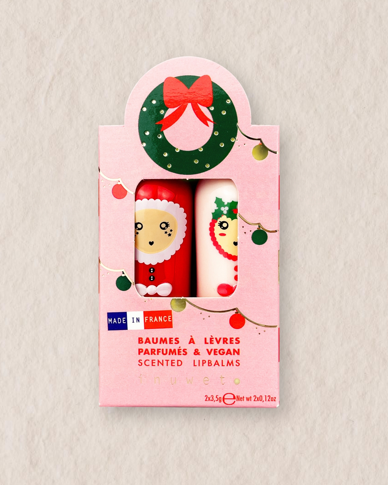 Cajita de regalo con dos bálsamos labiales veganos hechos con ingredientes naturales. Aromas mango y caramelo. Este duo con olor a mango y caramelo con su conocida carcasa con silueta de conejitos vienen suavemente perfumados y enriquecidos con manteca de karité y aceite de macadamia que nutrirán, repararán y protegerán los labios.